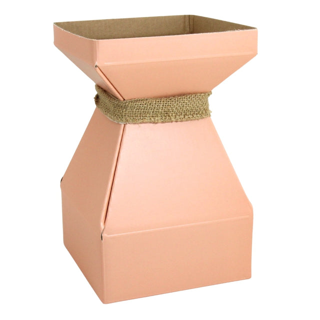 Vaz Small Flat Pack Transportable Cardboard Vase with Plastic Liner in Peach. Pack of 10. 14.5x14.5x22.5cmH.