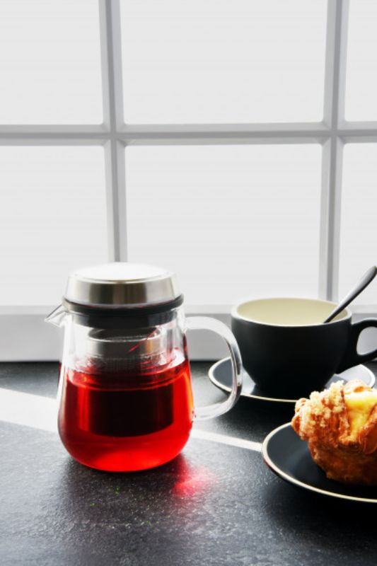 Elegant 600ml Brew Infusion Teapot with screw infuser for customizable tea strength and flavor, made of durable borosilicate glass.