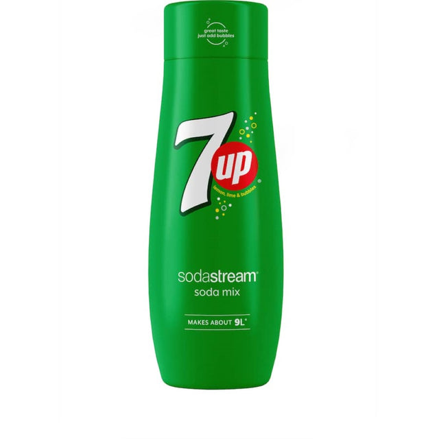 7 up for sodastream 440ml – 7up is a lemonade style soft drink that is perfectly balanced with lemon and lime flavours to deliver a crisp, clean, and refreshing taste. Simply ass a capful of syrup to sparking water for that classic soda flavour. -the great taste, just add bubbles. -makes up to 9l when prepared as per instructions.