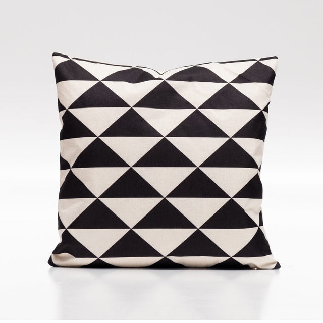 Upgrade your home décor with this versatile piece from Smartfox AU. Easy to clean and maintain, this cushion cover is as practical as it is chic. Transform your space into a modern oasis with the Harris Cushion Cover in Black & White Triangles. Order yours today and experience the perfect blend of comfort and style!