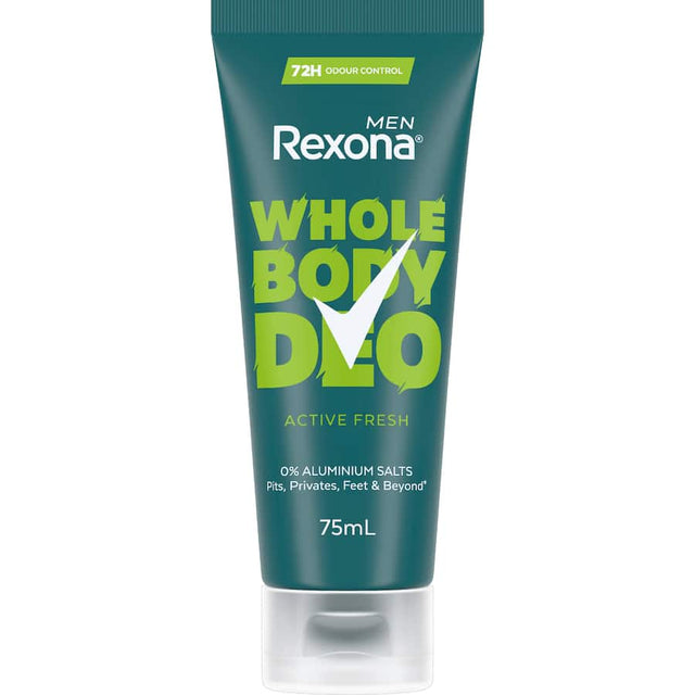 Stay fresh all over with Rexona’s Whole Body Deodorant. This aluminium-free Whole Body Deodorant provides 72 hours of odour control so you can overcome your limits. Rexona’s Whole Body deodorant cream features its patented Odour Adapt Technology, which stops odour before it starts. This deodorant cream works over a large surface area, making it a convenient choice. It feels light and refreshing on the skin, leaves less residue, and dries quickly – providing nearly instant freshness.