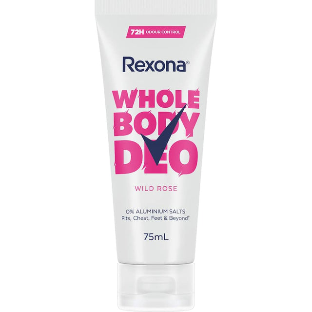 Stay fresh all over with Rexona Wild Rose Whole Body Deodorant. This aluminium-free deodorant for women provides 72 hours of odour control so you can overcome your limits. Our whole body deodorant features Rexona’s patented Body Adapt Technology, which stops odour before it even starts. This deodorant cream works well over a large surface area, making it a convenient choice. It feels light and refreshing on the skin, leaves less residue and dries quickly, providing nearly instant freshness.
