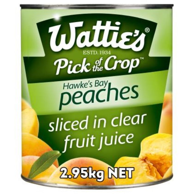 Discover the deliciousness of Wattie's Peach Slices Clear Juice (14036) in a generous 3KG pack! Sourced from the finest peaches grown in Hawke's Bay, these delightful peach slices are packed in clear fruit juice, ensuring every bite bursts with sweet, juicy flavor. Whether you're looking for a quick addition to your breakfast buffet, a convenient topping for desserts, or an invigorating ingredient for fruit flans and crumbles, Wattie's Peach Slices offer a versatile solution to elevate your culinary creations. This time-saving, all-natural fruit option is perfect for room service menus or family gatherings, bringing a taste of New Zealand straight to your table. With a net weight of 2.95 kg and made in New Zealand from both local and imported ingredients, you can indulge in the quality and freshness that Wattie's is renowned for. Enhance your meals with the mouthwatering goodness of these peach slices – the perfect companion for pastries and delightful desserts. Add a burst of fruity flavor to your life with Wattie's Peach Slices Clear Juice, available now at Smartfox AU!