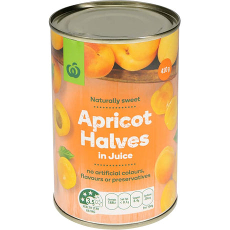 $8.70 AUDUnit price /UnavailableWoolworths Apricot Halves In Juice Can 410g