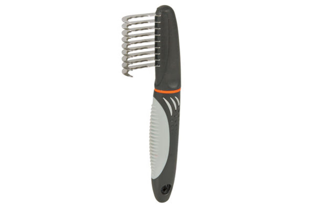Trixie - De-Matting Comb For easy de-matting and carding Curly Hair - Soft, curly, is sheared regularly eg poodle, bichon frise Long Hair/Silky Hair/Longhaired Cats - Medium-long up to long, silky or thick top hair either with fine or with soft, thick undercoat eg Collie, golden retriever, bernese mountain dog, border collie, yorkshire terrier, setter, longhair dachshund, spaniel, maltese (Cats: Maine coon, Norwegian Forest Cat, Persian) Shaggy Hair - Top hair and undercoat long, lush and shaggy eg Bobtail, Briard, Tibetan Terrier, Bearded Collie 4.5cm comb