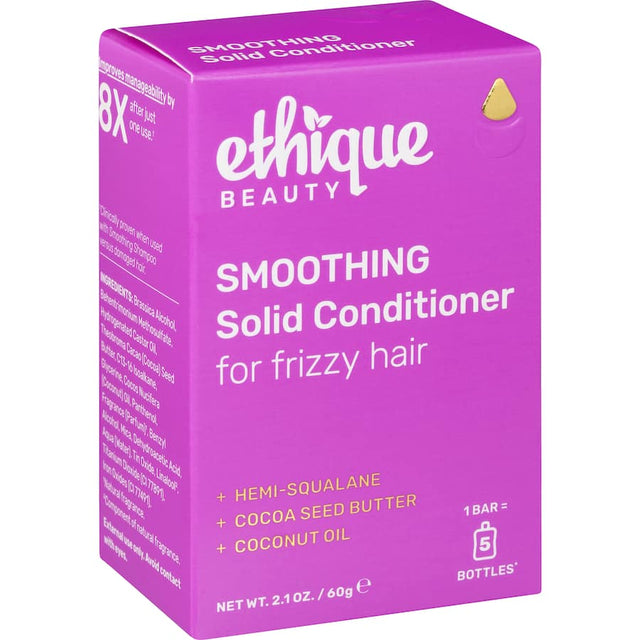 Discover the ultimate hair care solution with the Ethique Conditioner Bar Smoothing 60g. This eco-friendly conditioner bar is perfect for those seeking luxurious, smooth hair without the environmental impact of traditional liquid conditioners. Formulated with a blend of natural ingredients like Brassica Alcohol and Hydrogenated Castor Oil, this conditioning bar nourishes and hydrates your hair, leaving it irresistibly soft and manageable. The infusion of Theobroma Cacao (Cocoa) Seed Butter ensures that your locks are not only smooth but also radiant and healthy, while Cocos Nucifera (Coconut) Oil provides deep moisture for your strands. Plus, enriched with Panthenol, this bar promotes hair strength and vitality. The Ethique Conditioner Bar is free from harmful chemicals, making it the ideal choice for eco-conscious consumers seeking sustainable hair care. Its compact size and long-lasting formula make it travel-friendly, allowing you to pamper your hair wherever you go. Say goodbye to plastic bottles and hello to a greener planet without compromising on quality. Transform your hair care routine with this vegan-friendly conditioner bar, and enjoy the beauty of smooth, manageable hair every day. Ideal for all hair types, the Ethique Conditioner Bar Smoothing is your perfect partner in achieving luscious locks and a more sustainable lifestyle.