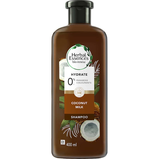 Discover the ultimate hydration with Herbal Essences Bio:renew Hydrating Shampoo Coconut Milk, specially formulated for dry hair. Our paraben-free shampoo is infused with nourishing coconut milk, a natural ingredient renowned for its moisture-rich benefits, helping you achieve beautifully hydrated hair like the Polynesian women. This 400ml bottle is packed with Bio:renew active antioxidants, aloe vera, and sea kelp, which work synergistically to restore your hair’s natural moisture balance and promote softness.
