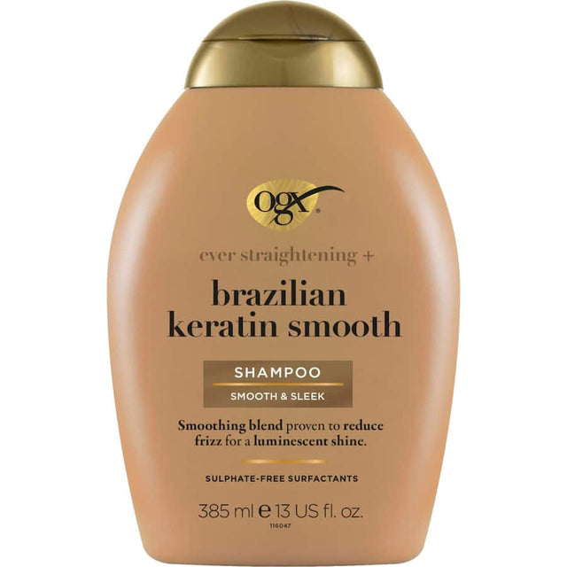 Discover the transformative power of OGX Brazilian Keratin Therapy Shampoo, your ultimate solution for beautifully smooth, manageable hair. This premium, sulfate-free shampoo is specially formulated with a unique blend of Brazilian coconut oil, keratin proteins, avocado oil, and cocoa butter, working in harmony to strengthen and soften your hair. Perfect for those with curly or wavy hair, this rich therapy shampoo helps to smooth the cuticle, ensuring strong, radiant tresses. Say goodbye to frizz and hello to luxurious shine with this keratin-infused formula. The Brazilian Keratin Therapy Shampoo not only nourishes but also offers long-lasting sleekness, making it ideal for anyone looking to maintain straight hair or enhance their natural waves. Elevate your hair care routine with our cruelty-free, sulfate-free shampoo that delivers professional salon-quality results right in your home. Uncover the secret to shiny, healthy-looking hair with OGX Brazilian Keratin Therapy Shampoo, available now at Smartfox AU.