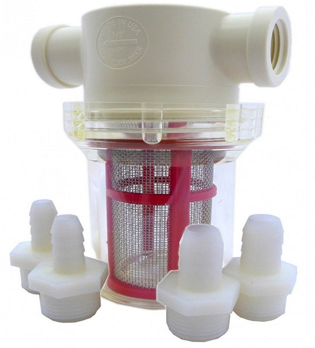 The Mac Daddy Bouncer Filter is equipped with both 3/8" and 1/2" barbs, providing versatile compatibility for your brewing setup. Operate confidently at temperatures up to 65°C, and enjoy the simple, pump-free design that makes cleaning a breeze. Brew better tasting and clearer beer while minimizing waste, all with the Mac Daddy Bouncer Filter. Elevate your home brewing game today! Perfect for beer enthusiasts and expert home brewers alike, the Mac Daddy is a must-have for anyone looking to refine their craft.