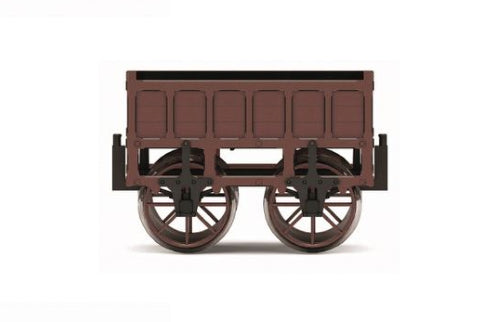The diminutive open-topped coal wagon is finished in an L&MR brown livery. The accessory bag contains two chain couplings.