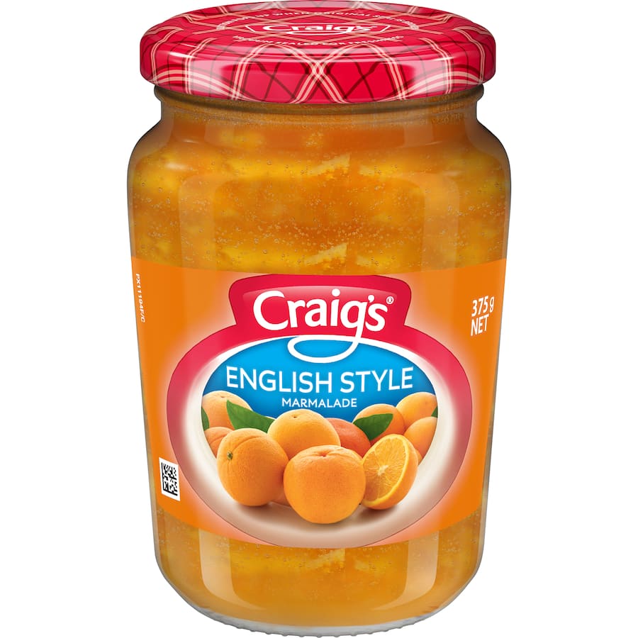 Loved by generations of Kiwis, Craig's English Style Marmalade boasts a uniquely delicious sweet and tangy flavour. Bring any plain sandwich to life, spoon over ice cream or use to make your favourite pies and other desserts. Offering a great balance of tart and sweet, Craig's English Style Marmalade tastes absolutely delicious paired with toast, pastries, pancakes and many other favourites. It contains no added colours, flavours or preservatives.