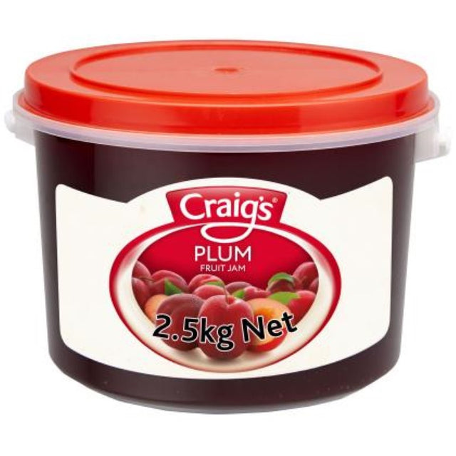 Conveniently packed in a large 2.5kg pail, Craig's Plum Fruit Jam has a resealable lid for easy use. It's great for use in desserts and baking, and is a perfect accompaniment to the breakfast menu. An ideal spread for use in bakeries and cafés.