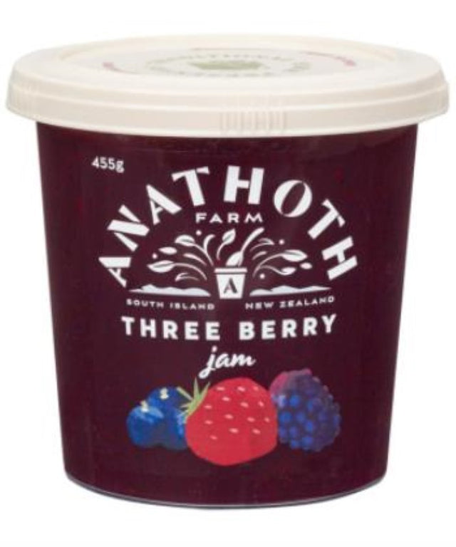 Elevate your breakfast experience with Jam Three Berry - Anathoth - 455G, a luscious blend of New Zealand strawberries, boysenberries, and blackcurrants. This gourmet fruit jam not only tantalizes the taste buds but is also a wholesome choice for fruit lovers. Perfect for spreading on warm toast, drizzling over pancakes, or mixing into smoothies, this delicious jam is bursting with real fruit flavor. With no added preservatives, artificial colors, or flavors, you can indulge without guilt. Our gluten-free and vegan-friendly jam is crafted from carefully sourced, high-quality berries, ensuring each jar embodies the vibrant essence of fresh New Zealand fruits. Whether you're enhancing your breakfast, concocting a delightful dessert, or simply enjoying it straight from the jar, Jam Three Berry is the perfect addition to any meal. Experience the rich, sweet and slightly tart notes of this artisanal jam and see why it's a staple in every gourmet kitchen. Make every bite memorable with a spread that’s made with love and the finest ingredients. Order your 455G jar of Anathoth's Jam Three Berry today from Smartfox AU and transform your culinary creations with the taste of nature's finest ingredients!