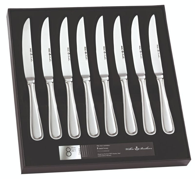Elevate your dining experience with the Linea 8 Piece Steak Knife Set, exclusively available at Smartfox AU. This premium steak knife set is expertly designed for meat lovers who appreciate quality and performance. Crafted from high-grade 18/10 stainless steel, these knives feature a mirror finish that not only adds elegance to your table setting but also ensures durability and longevity. Each knife is perfectly balanced, offering a seamless cutting experience for steak and other meats. The ergonomic handles provide a comfortable grip, allowing for effortless slicing during dinner parties or family gatherings. The Linea steak knife set makes an impressive addition to any kitchen and is also a thoughtful gift for weddings, anniversaries, or housewarming events. Packaged in a sophisticated gift box, it is ready to delight anyone who enjoys fine dining. Enjoy the ultimate combination of style and functionality with this steak knife set, and impress your guests at every meal. Upgrade your cutlery collection today and experience the difference that quality makes at your dining table.