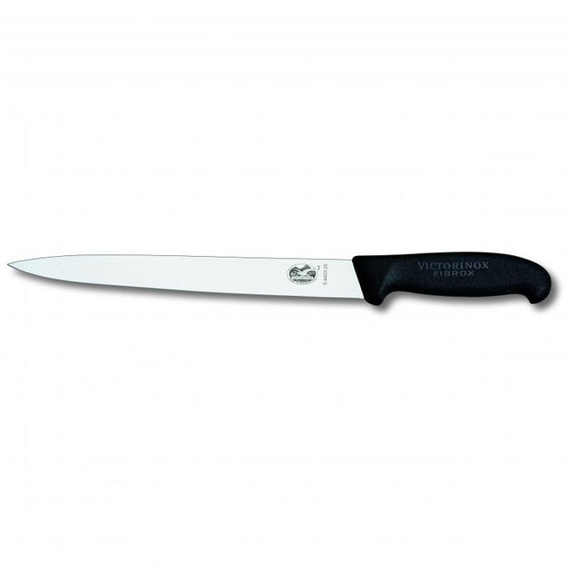 Victorinox Slicing Knife Pointed Tip Plain Edge Fibrox 25cm | Black
