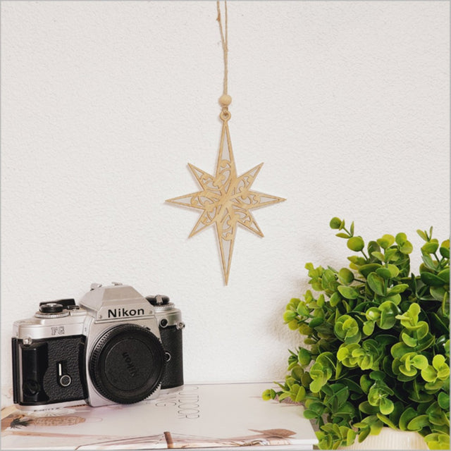 Illuminate your home this Matariki with our exquisite Hanging Ornament - Matariki Star in a stunning white finish. Crafted from premium materials, this elegant star ornament is made of laser-cut bamboo and 6mm thick satin acrylic, ensuring durability and a sleek design that catches the eye. With dimensions of 97mm x 140mm x 7mm thick, this beautiful decoration is perfect for hanging in your living room, den, or your holiday décor.