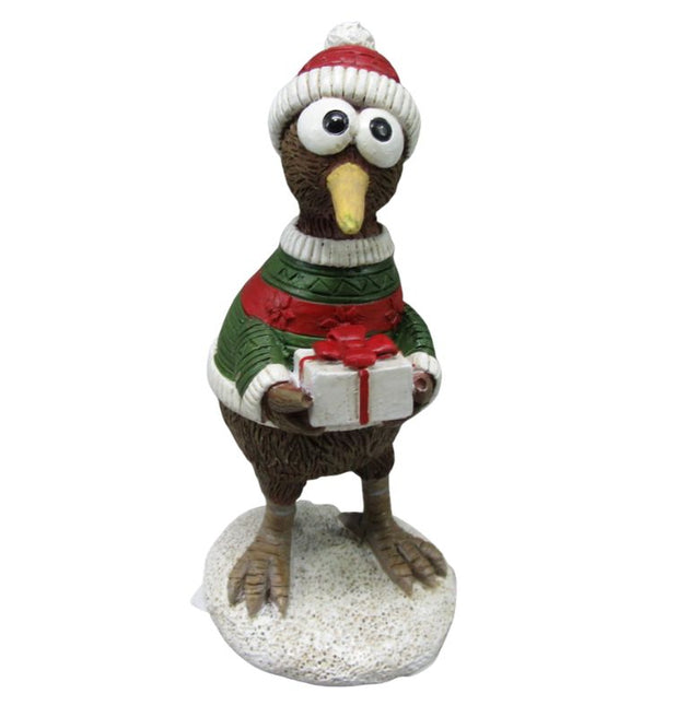 Kiwi - in Christmas Sweater with Gift - Poly Resin