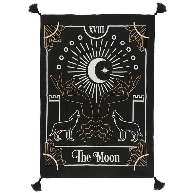 Transform your space with the captivating Large Moon Tarot Card Wall Tapestry from Smartfox AU. This exquisite wall hanging, featuring enchanting tarot card imagery, is perfect for anyone seeking a touch of mystical charm and spiritual energy. Measuring H:180 x W:138 x D:0.2 cm, this tapestry showcases intricate designs that stir curiosity and conversation. The stunning gold printed accents elevate its aesthetic, making it not just a tapestry but a statement piece for any room. Ideal for tarot enthusiasts and those passionate about astrology, this versatile wall tapestry can also serve as a stunning tablecloth, an elegant sofa throw, or a unique floor covering. Add a touch of bohemian flair to your bedroom, living room, or meditation space with this beautiful piece of home decor. The corner tassels enhance its whimsical quality, giving you a perfect blend of art and functionality. Whether you're looking to enrich your home with mystical decor or searching for unique mystical gifts, the Large Moon Tarot Card Wall Tapestry brings a profound energy to your environment. It’s more than just a decoration; it’s a reflection of your individuality and interests, designed for those who seek magic in everyday life.