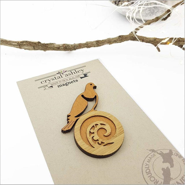 Magnet - Kereru on Koru (NZ Rimu and Bamboo Veneer)