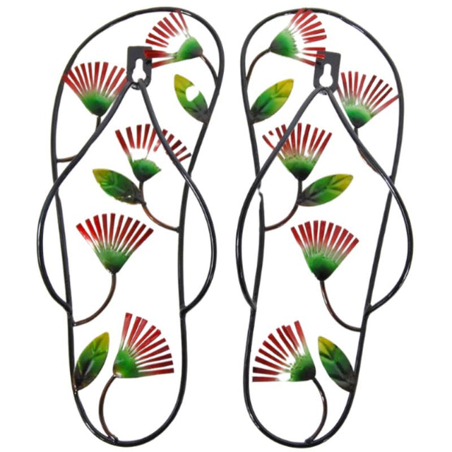 Metal Wall Hanging - Jandal with Pohutukawa (Set of 2)