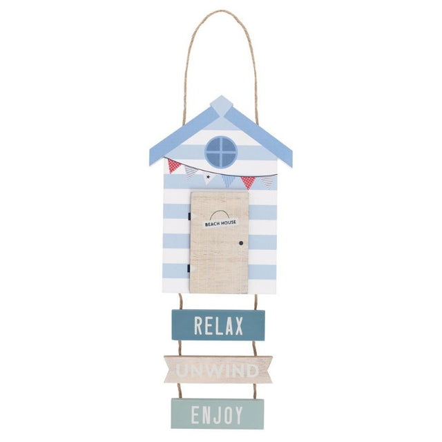 H: x W: x D: cm - This adorable nautical sign comes shaped like a beach hut and features three hanging pieces that say, 'Relax, Unwind, Enjoy'. Perfect for any seaside abode. Part of the Surf's Up collection of nautical gifts and decor.