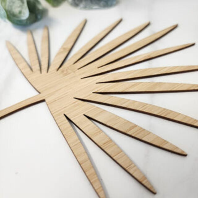 Enhance your home decor with our Bamboo Palm Stem wall art, sized at 14.6 x 19 cm. This piece features intricate laser-cut designs on 1.8mm thick bamboo, showcasing its natural beauty. Perfect for creating a serene ambiance in living rooms, bedrooms, and offices, this sustainable wall art reflects your eco-friendly values. The delicate palm design adds a calming vibe, making it a wonderful gift for nature lovers. Hang it alone or combine it with other botanical art for a stunning gallery wall. Lightweight yet durable, it's easy to hang and maintain, ensuring long-lasting enjoyment. Explore our collection to find a piece that fits your style and decor theme.