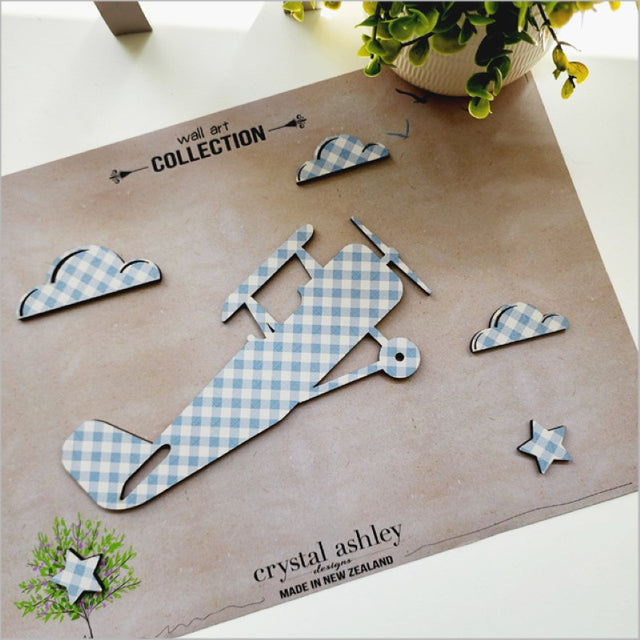 Wall Art - Propeller Plane 2 Set Textured pattern (Blue Check)