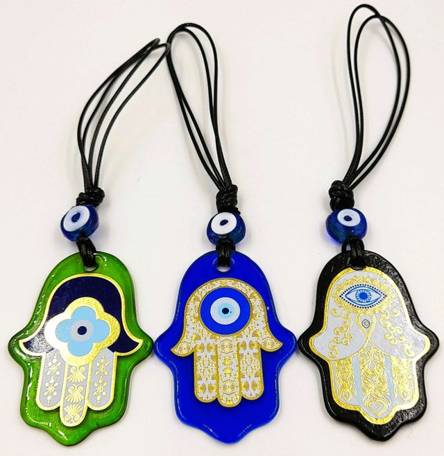 Wall Hanging - Turkish Glass Hamsa with Evil Eye (Set of 3 Assorted)