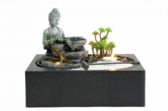 Transform your space into a tranquil oasis with our Zen Garden Buddha Water Feature (29cm). This stunning tabletop fountain brings serenity and peace to any environment, making it the perfect home decor accent for meditation spaces, gardens, or indoor tranquility rooms. The soothing sound of flowing water creates a calming atmosphere, enhancing your mindfulness practice and relaxation. Ideal for stress relief, this water feature showcases a beautifully detailed Buddha figure, inviting a sense of harmony and balance to your life. Made for easy setup, simply fill the fountain with water, plug it in, and let the gentle cascade begin. Its warm white light further enhances the serene aesthetic, creating a delightful ambiance in the evening. Upgrade your home with this decorative water feature, perfect for enhancing Feng Shui, and experience the benefits of connecting with nature through soothing sound and sight. Dimensions: 29 x 21 x 22cm. Elevate your living space with Smartfox AU’s Zen Garden Buddha Water Feature and embrace tranquility today!