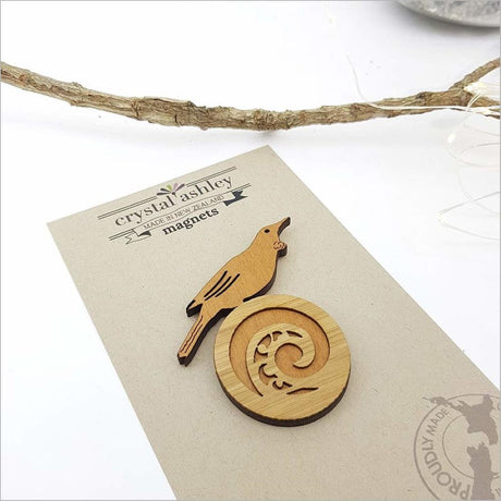 $17.70Unit price /Unavailable Magnet - Tui on Koru (NZ Rimu and Bamboo Veneer)