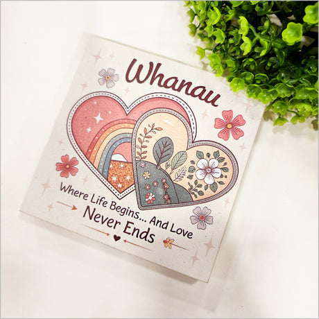 Plywood Art Block - Whanau is Forever Square (12 x 12cm)