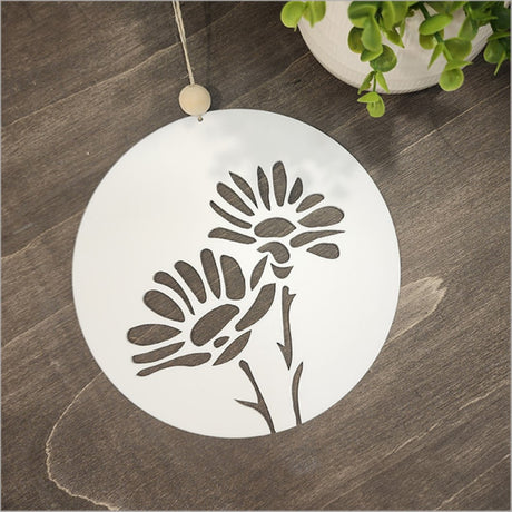 Kiwiana Wall Art - Hanging Acrylic Circle Mt Daisy (White)