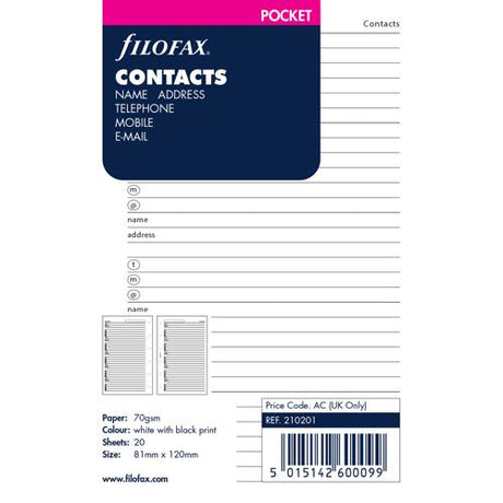 $12.95 AUDUnit price /UnavailableFilofax Organiser Refill Pocket Contacts White