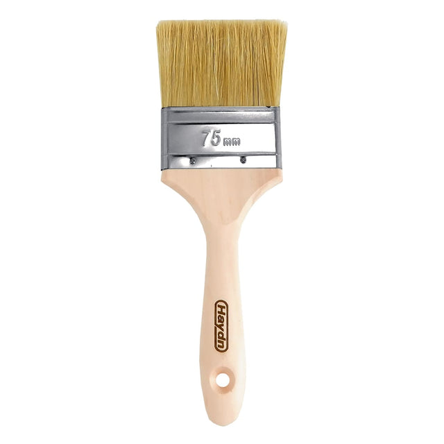 The Haydn 75mm Industrial Brush with white filament is a cost-effective, reliable choice for a variety of painting and coating tasks. Designed with a comfort-shaped, unlacquered wooden handle ideal for use with solvents, it features white blended filament and a stainless steel ferrule for durability and consistent performance.