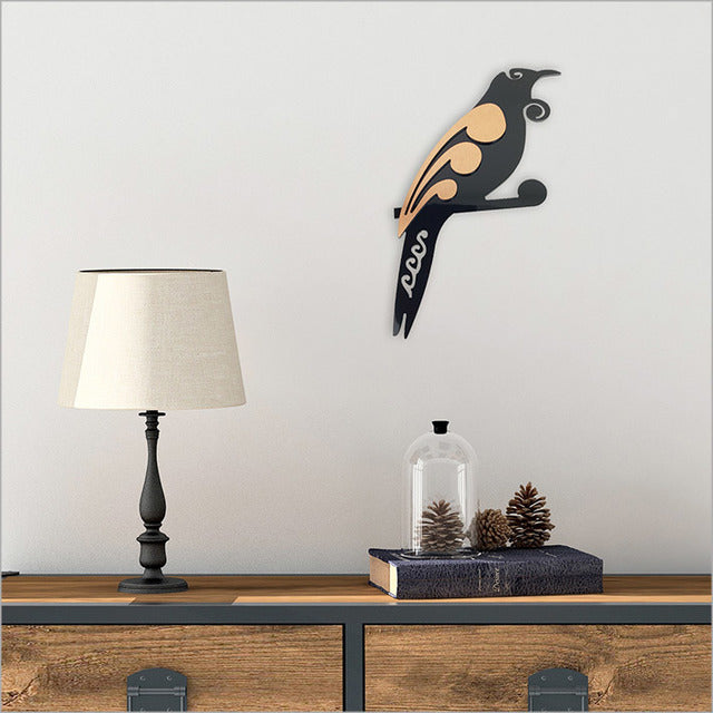 Wall Art - 2 Tone Moko Birds Tui Small (316mm)- Kiwiana