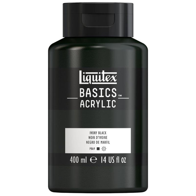 Discover the versatility and affordability of Liquitex Basics Acrylic Paint 400ml in a rich IVORY BLACK hue, perfect for artists at every skill level. Designed to deliver the same high-quality as our professional range, this acrylic paint is formulated with fine art pigments renowned for their lightfastness and brilliance. With a carefully selected lighter concentration of pigment, you can achieve vibrant results without breaking the bank.