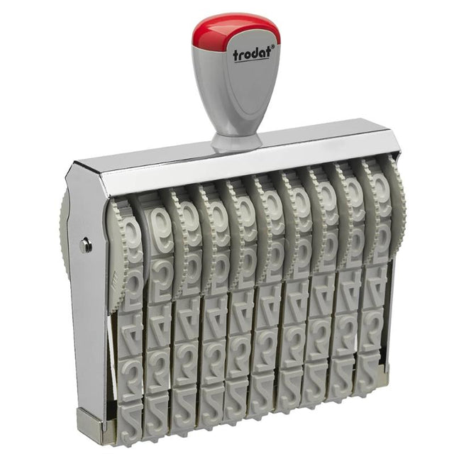 Introducing the Trodat Classic Numberer 151810, the perfect solution for all your numbering needs. This high-quality number stamp features a character size of 18mm and offers a total of 10 bands, ensuring flexibility and precision in your stamping tasks. Easily customize your stamp with letter bands, choosing between A-M or N-Z to suit your specific requirements. The Trodat Classic Numberer is designed for comfort, with ergonomically shaped grips that facilitate effortless handling, making your stamping experience quick and efficient. Crafted from durable metal, this reliable device is built to last, ensuring you won't need to replace it frequently, thus providing great value for money. Although not self-inking, the Trodat Classic Numberer 151810 allows for easy ink applications, leading to consistently clear prints every time. With a 12-month warranty, you can purchase with confidence knowing that you’re supported by a reliable brand. Ideal for offices, schools, and businesses, the Trodat Classic Numberer is essential for organizing documents, creating invoices, or managing inventory. Upgrade your stamping solution today with the Trodat Classic Numberer 151810, available now at Smartfox AU, where quality meets convenience for all your office supplies needs. Experience superior performance and long-lasting reliability with this must-have office tool.