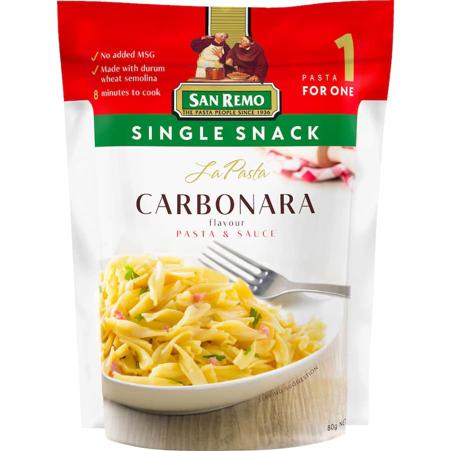 San Remo La Pasta Pasta & Sauce Carbonara Single snack 80g