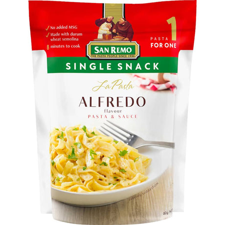 $3.80 AUDUnit price /UnavailableSan Remo La Pasta Pasta & Sauce Alfredo Single snack 80g