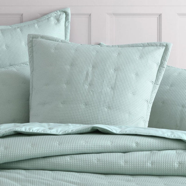 The Ascot European Pillowsham Surf by Logan And Mason Platinum is positively beautiful in its simplicity. Constructed from a textured waffle weave with neatly tailored edges, this quilted design is both sophisticated and contemporary.