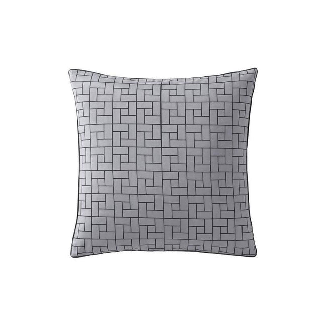 Jamala Black is a bold geometric design, positioned on a diagonal to add a new level of interest. The sophisticated panel features traditional micro dobby inspired patterns and highlights of mock gold elevate the design. The reverse is then complimented with a monochromatic micro pattern and styled with black piping.