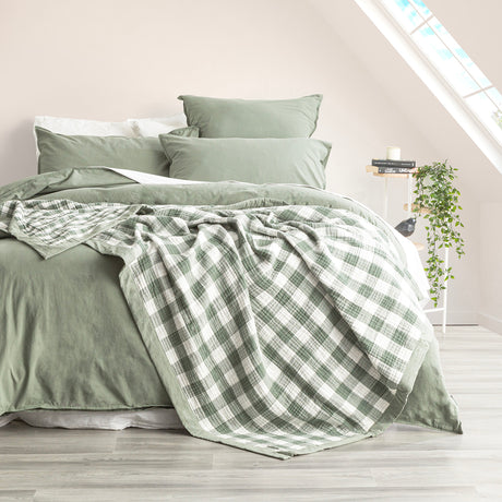 $152.00 AUDUnit price /UnavailableGingham Washed Cotton Yarn Dyed Revesible Textured Blanket Queen/King Emerald