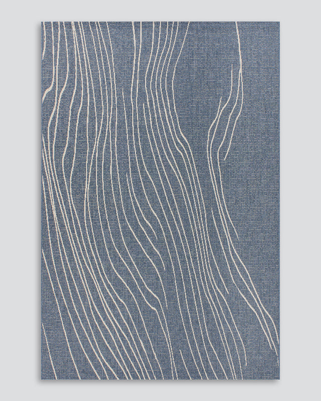 This stunning, hand-drawn river design, in tranquil blue tones, will suit any outdoor living space. Flatweave in construction, and made in Belgium, this rug is suitable for both indoor and outdoor use.