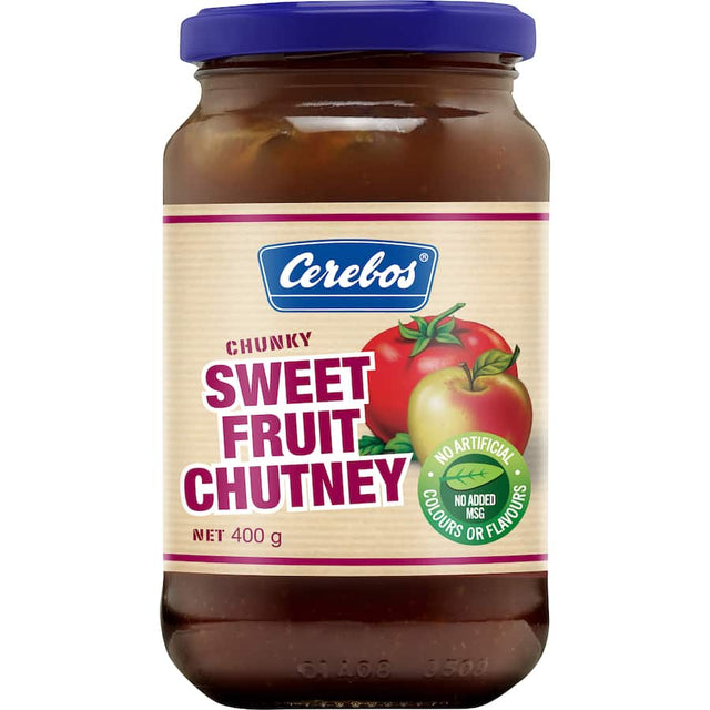 cerebos sweet fruit chutney contains no artificial colours or flavours. Perfect for adding extra flavour to an array of dishes, it's a great accompaniment to sandwiches, wraps, chicken and rice dishes and much, much more.
