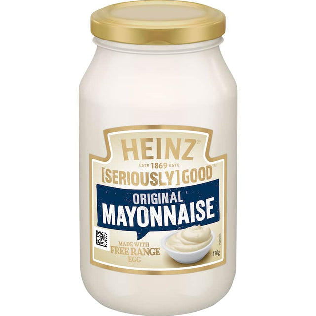 Elevate your meals with Heinz [SERIOUSLY] GOOD Original Mayonnaise, crafted with high-quality free-range eggs for that unmistakable, creamy taste you love. This versatile mayonnaise is perfect for dipping, spreading, and dolloping on a variety of dishes, from freshly grilled barbecued meats to vibrant roast vegetables. Whether you're enjoying crispy hot chips, a zesty potato salad, or delicious sandwiches, Heinz [SERIOUSLY] GOOD Original Mayonnaise is the condiment that enhances every bite. Its rich and velvety texture makes it an ideal partner for sushi and wraps too, ensuring each meal is delectable. What's more, this mayo is free from added flavors and artificial colors, allowing the pure taste of quality ingredients to shine through. A must-have staple for your kitchen, Heinz [SERIOUSLY] GOOD Original Mayonnaise provides the ideal balance of flavor and freshness. Make your dishes unforgettable and indulge in the seriously good taste of Heinz mayonnaise today!