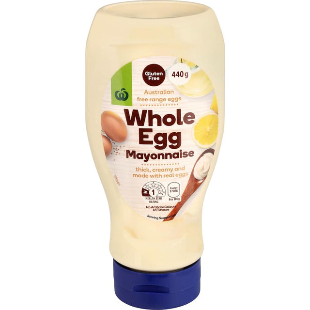 Indulge in the rich, creamy taste of Woolworths Mayonnaise Whole Egg 440g, your perfect companion for sandwiches, salads, and dips. Made using high-quality ingredients, our whole egg mayonnaise is crafted to enhance your culinary creations with its smooth texture and delectable flavor. Whether you're preparing a classic potato salad, a hearty sandwich, or a zesty dressing, Woolworths Mayonnaise adds that extra touch of goodness. This versatile mayonnaise is not only delicious but also free from artificial preservatives, ensuring you enjoy a pure and wholesome product. With a generous 440g jar, it’s perfect for families who love to whip up quick meals or for those hosting gatherings. Experience the delightful blend of flavors that make each bite irresistible. Perfect for health-conscious consumers, our whole egg mayonnaise is a blend of the finest eggs and oils, reflecting our commitment to quality and taste. Add a dollop of Woolworths Mayonnaise to your plate and elevate your meals today! Enjoy the goodness of real ingredients in every spoonful with Woolworths Mayonnaise Whole Egg 440g — the ultimate choice for mayonnaise lovers and home cooks alike.