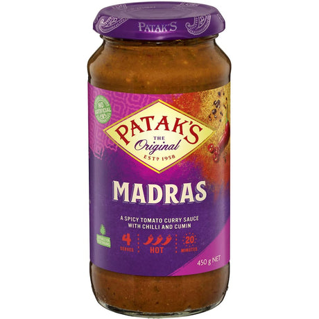$16.50 AUDUnit price /UnavailablePataks Recipe Base Madras Tomato, Chilli & Cumin Jar 450g