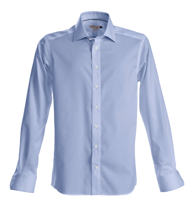 Men's non-iron solid coloured dress shirt crafted in high performance twill texture