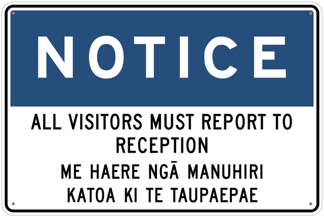 Te Reo Maori Sign|Notice Visitor Report to Rec W450mm x H300mm - Standard