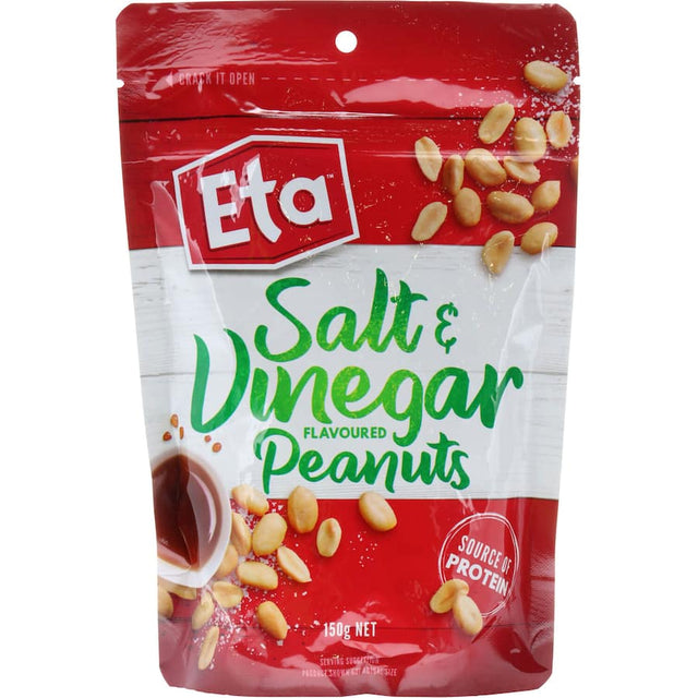 Discover the irresistible flavor of Eta Peanuts Salt & Vinegar, a crunchy snack that will elevate your munching experience! For over 30 years, we've been dedicated to bringing the finest quality nuts to kiwis, and these salt and vinegar peanuts are a testament to our commitment to taste. Packed with zingy vinegar tang and a touch of salt, each handful delivers the perfect balance of savory and sour. Ideal for parties, movie nights, or as a satisfying snack on the go, these peanuts not only delight your taste buds but also offer a nutritious crunch. High in protein, gluten-free, and rich in essential nutrients, Eta Peanuts Salt & Vinegar are more than just a tasty trail mix; they’re your ideal companion for healthy snacking. Try them with your friends and family, or keep them all to yourself—either way, you won't be able to resist their addictive charm. Made to cater to the Kiwi palate, our commitment to quality and flavor makes us stand out among other snack brands. Embrace the joy of snacking with Eta Peanuts Salt & Vinegar, where every bite brings a burst of flavor. Elevate your snack game today with these crunchy delights available at Smartfox AU!